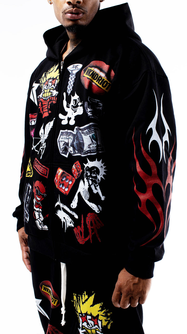 RIOT LIFESTYLE ZIP UP HOODY BLACK